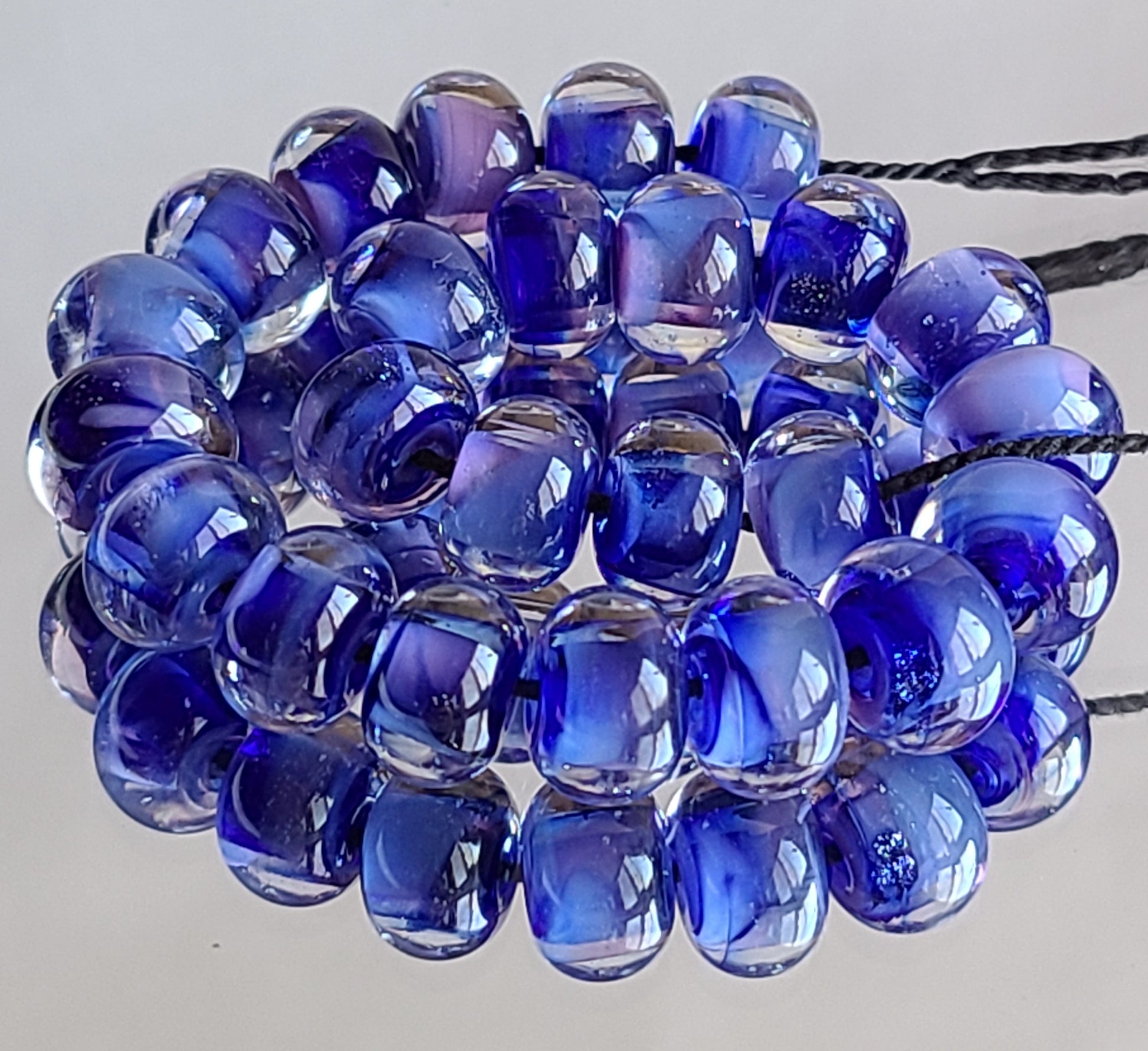 Journey into the breathtaking beauty of these Glimmer Canyon handmade lampwork beads, inspired by the dramatic twilight skies over deep desert canyons where blues and purples blend in stunning harmony. Each bead is individually crafted by hand over an open flame, capturing the rich, jewel-like tones of sapphire blues and regal purples that evoke the magic of dusk settling over ancient stone. These artisan glass beads bring depth, elegance, and mystical beauty to your jewelry designs.