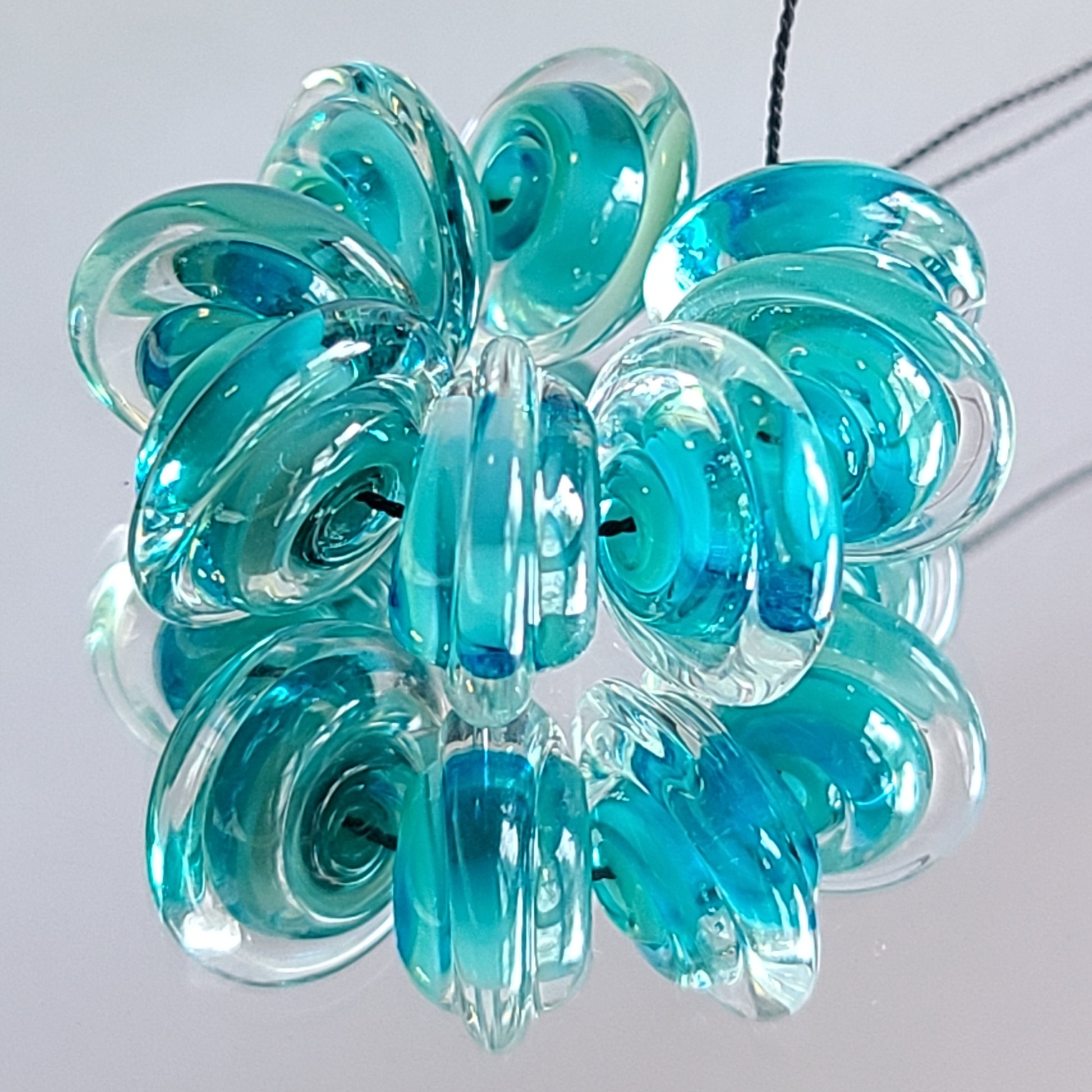 These artisan glass beads are individually flame-worked, making each one a unique treasure. The colors evoke the breathtaking beauty of tropical ocean waters with their clear, vibrant blue-green tones, bringing a sense of wanderlust and natural elegance to your jewelry creations. Like the exotic seas that inspired them, these beads capture both serenity and adventure.